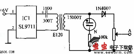 电子冻疮治疗仪专用集成电路SL9711构成振荡电路、功率放大电路及控制器,产生100Hz和3Hz的正弦波,经变压器升压后电位器调节电针回路中的电流。由于输出中加有二极管,因而流过人体的电流波形为脉动电流。作用于人体时,运动神经受到刺激引起肌肉颤动感。数十秒后,麻颤感觉消失,感觉和运动神经开始进入抑制状态,痛阈上升而呈现止痛效应,由于脉动电流抑制交流神经并使电流通过的蛋白质发生微量变性分解,开成血管活性肽等物质,因而在脉动电流停止后,尚有改善局部血液循环和后期止痛作用。