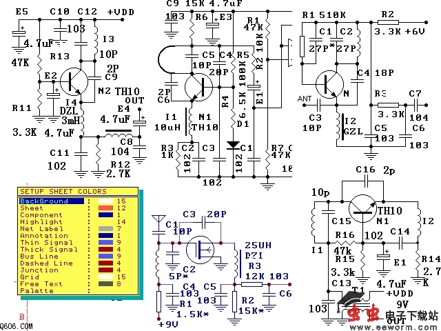 超再生电路按熄灭电压来源的不同,可分为他熄式和自熄式两种,这个外加或自生的电压决定了超再生的熄灭频率。前者采用独立的振荡电路来产生熄灭电压,后者有管子本身兼产生熄灭电压。自熄式电路简单、经济效率也高相对使用得更为广泛。以下也主要介绍这种电路形式。(图2图3图4图6电路参数为对应27MHz,图5对应266MHz频率)。