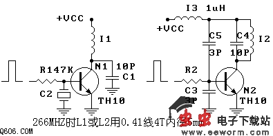 和超外差电路的调试工作相比较,由于电路简单,整体指标受元件个体之间参数的差异或PCB板材质的不同影响严重,每个外围元件的更改都可能使实际电路的情况变得微妙起来,所以超再生电路的调整更需要耐心。常见的ASK发射端电路, 如上图俩编码载频发射电路,N用任一款UHF段的NPN管,L可以用0。41漆包线4T左右(对应266MHZ,315MHZ把线距拉宽点便可,400MHZ 3T)。装好后,工作电流约3MA(12V),没仪器又想知道它启动了没的话,可以用手指触摸PCB板元件的焊点,若电流有1MA左右的变化,便OK!接下来的是你的发射和接收的统调问题。