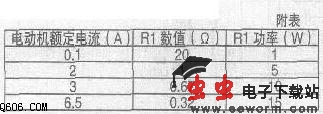 反馈电阻R1的数值经过实验得出,因此,VS在导通周期的时间内,电容C2便不能充电到足以再对单结晶体管触发的高压,然而,电容C2会充电到电动机电流所决定的某一数值。如果在某一导通周期电动机的电流增加,则C2上的电压也增加,故在下一周期开始时,C2就不需那么长的时间才能充电到单晶体的峰点电压。这种情况下,触发角就被减少了(导通角更大),加到电机上的方根电压就成比例增加,致使有效转矩增加。二极管VD5和电容器C1防止在导通期中由于触发单结晶体所造成的反馈,反馈电阻R1的取值具体如附表所示。