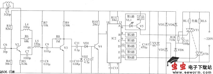 本例介绍无线遥控开关,具有动作可靠、简单实用等特点,能在6m范围遥控6路家庭用电设备。
