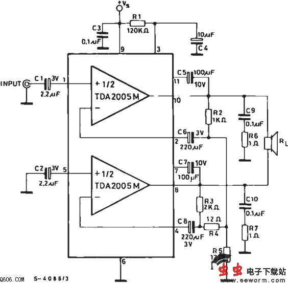 TDA2005是一块很实用的立体声音频放大芯片20W 主要参数: 工作电压:DC6~12V (12V最佳,电压低会影响输出功率和音质) 功率:输出10W X 2 阻抗: 输出4Ω 以上