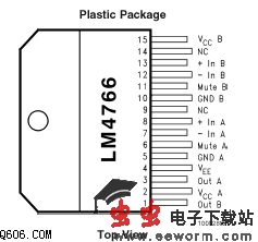 用它是一个不错的选择,从美国NS的官方网上DATASHEET上来看,LM4766和LM1876的外围电路相同,唯一不同的它的开关机静音控制电路不同,这就为用同一块PCB板也可以通用LM4766和LM1876创造条件,