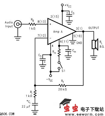 下图是该集成电路的典型应用电路图(BTL单声道)