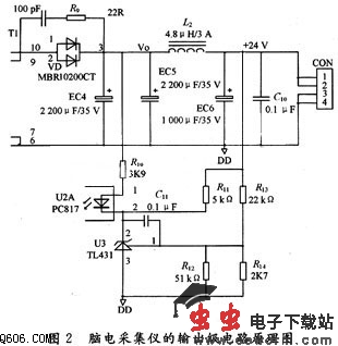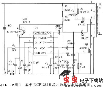 基于NCP1351B设计的“绿色节能”脑电采集仪电源样机原理图如图1,2所示。