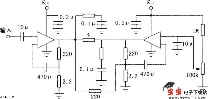 LM2002/2002A是音频功率放大集成电路,LM2002A具有高压保护,其最高瞬时电源电压可达40V采用5脚单列直插塑料封装。这两种集成电路具有输出功率大、失真度小、噪声低、外接元件数量少、输入阻抗高、开机冲击噪声小等特点。LM2002具有限流和热切断保护电路;LM2002A具有高压保护它们适用于汽车音响系统及普通便携式、台式收录机中作音频功率放大器。如图所示为其BTU电路。