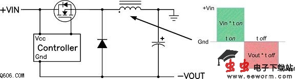 有趣的是,连接输入电容返回端的方法有两种,其会影响输出电容的 rms 电流。典型的电容布局是在 +Vin 和 Gnd 之间,与之相反,输入电容可以连接在 +Vin和 "V 之间。利用这种输入电容配置可降低输出电容的rms电流。然而,由于输入电容连接至 "Vout,因此 "Vout 上便形成了一个电容性分压器。这就在控制器开始起作用以前,在开启时间的输出上形成一个正峰值。为了最小化这种影响,最佳的方法通常是使用一个比输出电容要小得多的输入电容,请参见图 2 所示的电路。输入电容的电流在提供 dc 输出电流和吸收平均输入电流之间相互交替。rms 电流电平在最高输入电流的低输入电压时最差。因此,选择电容器时要多加注意,不要让其 ESR 过高。陶瓷或聚合物电容器通常是这种拓扑较为合适的选择。