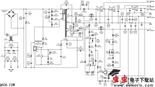 传统的音频系统通常使用基于线性变压器的电源,不但体积笨重,而且随着原材料价格的飞涨,制造成本日益昂贵。本文将为您介绍使用Power Integrations PKS607YN设计的一款75 W/126 W峰值输出电源。PeakSwitch产品系列为高质量的音频及视频产品电源提供出色解决方案,为高动态内容的音乐提供稳定的功率输出。降低了THD(总谐波失真),并极大地提高了音频的质量。如下介绍的设计使用一个PeakSwitch器件设计一个多路输出的电源,并使用一个合适的磁放大器控制电路来确保两个主输出上的交叉稳压。