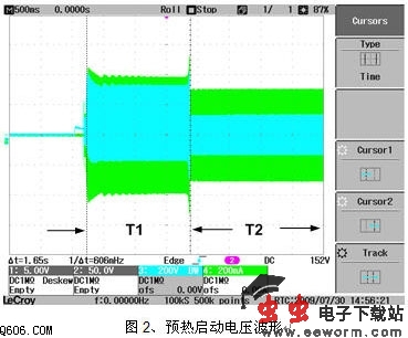 工作电压如图2所示T2时间段。至此,就实现了预热、触发和运行的全过程,使灯以最低的电压触发,提高了灯的使用寿命。