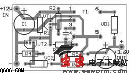 VT1要求Icm>0.5A,hEF为50-100,可用2SC2500、2SC1008等,VD1为稳压值为3V的稳压二极管。