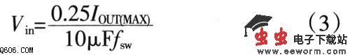 式中:Vin为没有大电容时的实际最大的峰峰波动电压值;IOUT(MAX)为最大的直流负载电流;fsw为选择的转换频率,如果Vin值大于Vrip的值,则需要大电容。