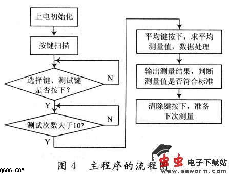软件部分包括主程序、人机界面和数据的测量与处理部分。主程序负责整个系统的协调与控制工作,通过调用不同的模块完成相应的工作。本测定仪以每个品种10次随机采样的算术平均值作为测量结果,有效地提高了测量的准确性和重复性。主程序的流程图如图4所示。