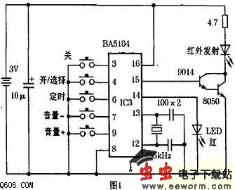 制作音响时要是能为其设计一款遥控电路,那应当很爽,呵呵今天呢我们就用易购的风扇IC BA5104/BA8206作控制芯片,通过合理设计,最大限度的发挥了该芯片的功能,经使用效果很好,现介绍给大家。它能实现以下功能: