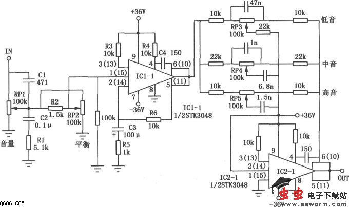 双运放三段音调处理电路图
