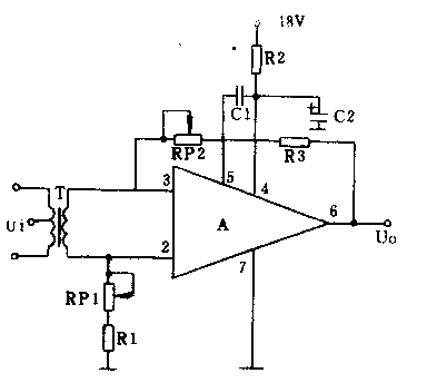 元器件选择:电容cl为82P,c2为100p/25v。电阻R1为27kn,R2为100n,R3为50kn。电位器RPl10kn,RP2为100kn。集成运算放大器A用GF2A。变压器T用晶休管收音机常用的小型输出变压器来代替。