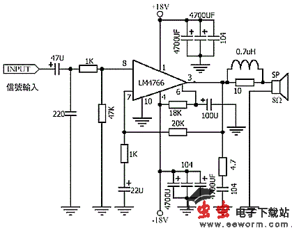 LM4766是美国NS公司推出的双声道大功率放大集成电路, 每个声道在8Ω的负载上可以输出40W平均功率,而且失真小于0.1%,在国家半导体公司的产品系列中,LM4766被归入“序曲(overture)”系列,属于最高端的单片双声道音频功率放大集成块。