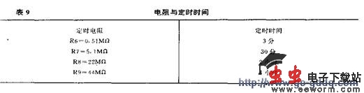 调节电位器RP.可调准A的②端基准电位。电源部分不用变压器而用电容降压供电。电路形式简单、成本低、体积小、不发热。电阻Rl为电容c1提供泄放电流回路。定时时间可参考表9。