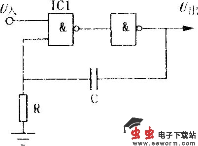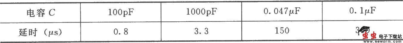 如图所示是一个负脉冲触发的宽延时单稳态触发器,它提供了数秒的延时时间,用于定时精度要求不高的场合。图中延时主要决定于电容C。对于TTL电路来说,R的阻值一般为5~10kΩ。下表中列出了R=5.1kΩ时,延时的实测数据。C的最大容量可达几百微法,延时可达数秒。延时结束后还需要等待一段时间(称恢复时间),就是要等待电容C两端电压不再变化时,方能进行第二次触发,否则,不是电路不能触发,便是所得的延时不稳定。等待第二次触发所需的时间决定于RC。当R=3.4kΩ、C=0.047μF时,实测延时为180μs,恢复时间为78μs。