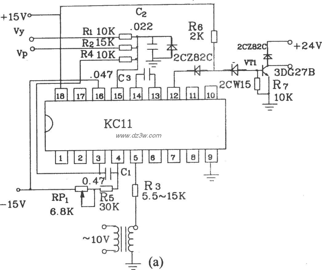 可控硅移相触发器KCll是KC01的改进型,适用在各种供电装置中作可控硅的单路脉冲移相触发。触发器具有线路简单、移相线性度好、抗干扰性能好、移相范围宽、能宽脉冲触发等优点。可以在单相、三相半控桥式供电装置中作移相触发使用。