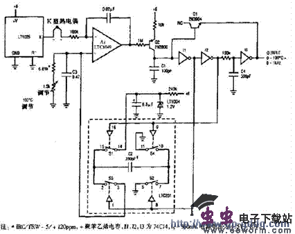 用LTC1049的热电偶温度频率转换电路