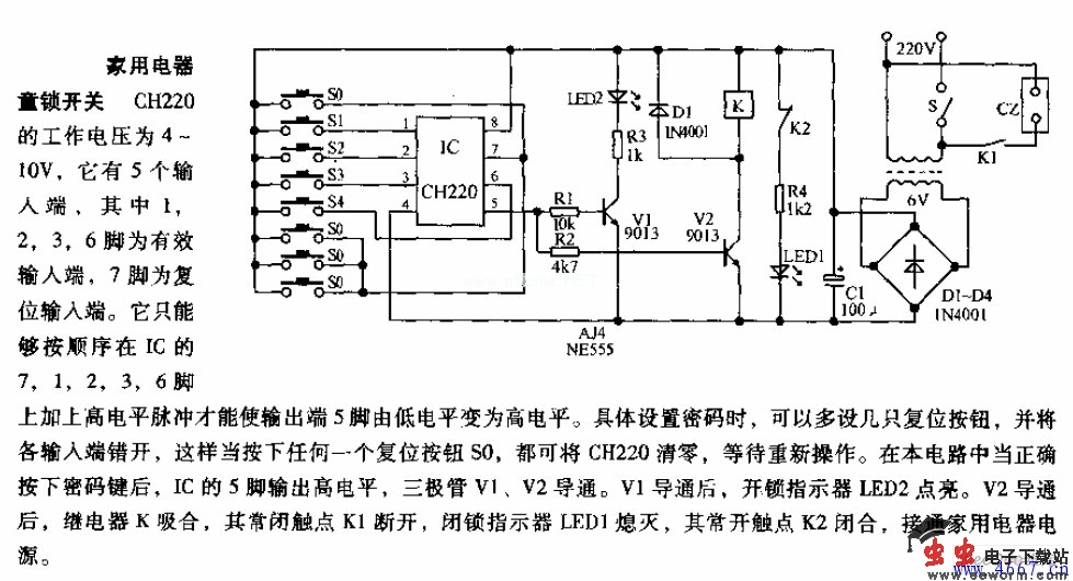 家用电器童锁开关电路图