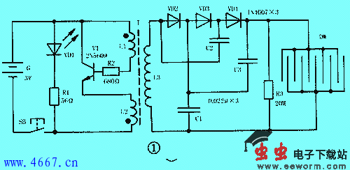 简单直流日光灯电路图(输入6V,可带6-8W灯管)和电子驱蚊器