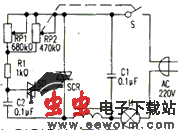 主电路由电源开关S、灯泡H、双向可控硅SCR、电感L等构成;电位器RP1(微调)、RP2(带开关)、电阻R1、电容C2和双向二极管SD组成双向可控硅的触发电路。UC充电电压达到双向二极管正负导通电压阈值时,触发双向控硅SCR双向导通;当输入电源电压过零时,SCR自动关断。调整电位器阻值可调整充电速率,即可调整可控硅的导通角,从而调节灯光的强弱。另外,L和C1构成高频滤波电路,使高频触发信号不致污染电网。它们的工频阻抗很小,不会影响灯光的亮度。