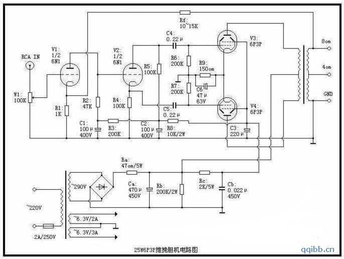 电阻全是金属膜,功放管的阴极电阻是水泥的,功放管工作在自给偏压状态。