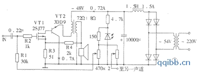 该功放大器电路的偏置电路利用发光二极管作为偏压稳定,在电源电压发生波动时,可保持静态电流基本不变。