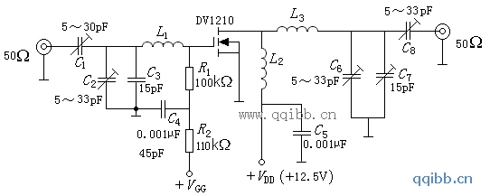 栅极采用C1、C2、C3、L1组成的T形匹配网络。