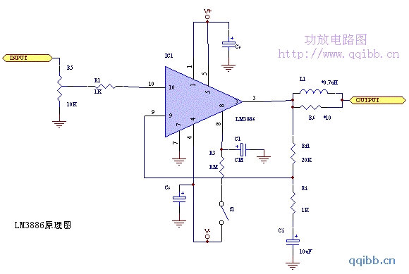 LM3886有两种型号:LM3886TF和LM3886T,前者散热片绝缘,后者不绝缘。