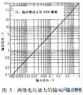 图5为两级电压放大级本身的输入/输出特性。由图可以看出削波点约90V。前已估算得知300B的最大驱动电压约45V。由图5还可知道1V输入时即可达到50V左右的输出,充分说明本机电压放大级具备足够的驱动能力。