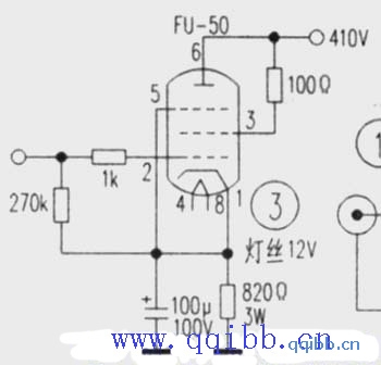 后级胆管848若改用FU-50管(见图3),电压采用410V,也有相当好的表现。若推动管改用6P3P,还要比用EL34管好听,其高频更纤细些,声场也开阔些。用此图组装的FU-50胆机,不管是低频力度,声场开阔度,都要比用其他胆管组装的好听,电源电路如图4所示。