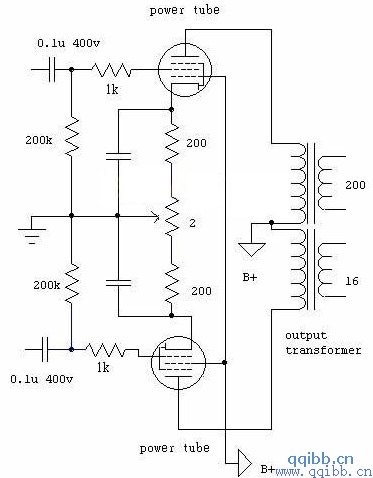 现在可进行测试了,当然面对这年事已高的老怪物,还附带其他暗病,是预料中事,果然老脾气发作了!在示波器上显示,下波严重失真,在5W输出时,量度功率管的电流是正常,然后进而量度两支“分相”推动管EF-12,其中一支EF-12的阴极电阻5k,量度结果是没有电压;由此而知,就失了下半波的推动讯号。关掉电源,逐一量度屏极电阻100k和阴极电阻5k是正常,为何没有电流工作?想不到的是栅极接地的2M电阻失了效;从未预计得栅极电阻2 M有坏的机会;用为这处没有高电压,是没可能因电压高而烧毁电阻,祇有推测是日久的老病。换了2M的电阻,在示波器看,大功告成了!最后一步骤就是将这两巨怪物比较放大的平衡度,于是来回轮流的接线在仪器测试它们的输出量,通常一对EL-12在推挽工作时,可有三十多瓦的输出,为了耐用和稳定性,这V-401祇有18W有效值输出,输出牛:是推挽式,有16Ω和200Ω输出两种选择。