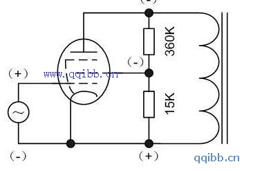 得意之处在其巧妙:将15K和360K电阻串联,并联在输出变压器初级两端,中间连接处接帘栅极。因15K电阻的直流降压作用,使6P15得到合适的帘栅电压(160V左右);同时15K电阻的音频分压,形成4%的帘栅极负反馈,一举两得,巧妙的的实现了“超线性电路”功率放大功能。使得该电路具有五极管的放大倍数、三极管的音质,从而实现了单管便可作成小功放的理想。