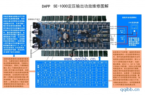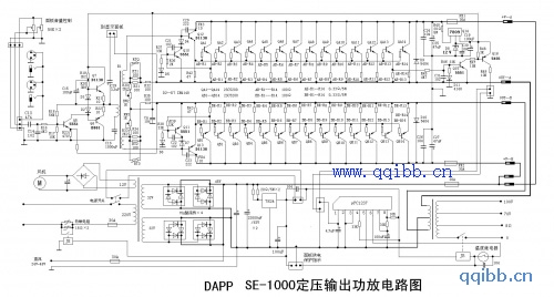 SE-1000定压输出功放原是美国生产的公共广播系统的纯后级定压输出功率放大器,目前国内有多种仿制品牌,如DAPP、NUSUN、艾普、乐思龙等。这种产品功率达1000W,又可多机并联使用。使用时与前级机依次安装在机柜中,集背景音乐播放、上下班定点报时、随时通知讲话、警消报警于一体。广泛使用在广场、宾馆,超市、学校等公共场合。附图是根据DAPP SE-1000实物绘制的整机电路图,其它品牌或系列产品也可参考。