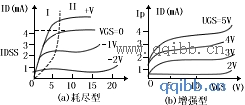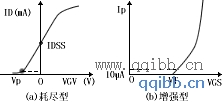 图4(a)给出了N沟道耗尽型绝缘栅场效应管的转移行性曲线,图中Vp为夹断电压(栅源截止电压);IDSS为饱和漏电流。 [!--empirenews.page--]