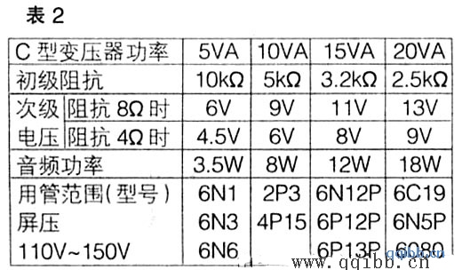 此法比较简单,将C型变压器初级中心连线引为连接B+电压的抽头,次级(中心连线断开)同名端相连(即并连)即可,不需拆开铁芯。有关阻抗及用管范围见附表。改制接线图见附图。