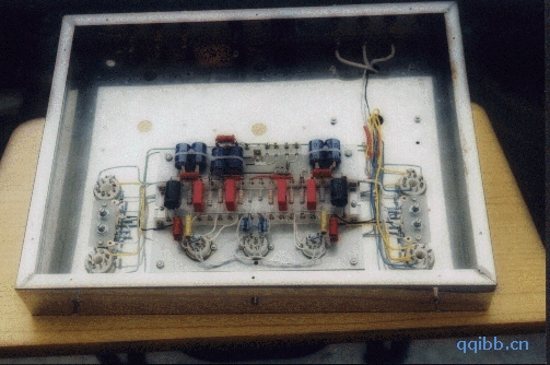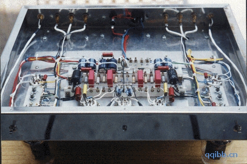 装好了的元件布线图,大家可以看到全部的线材全都扎住了,大家在制作胆机时一定要将线材固定,固定后的噪声有一定的减低。