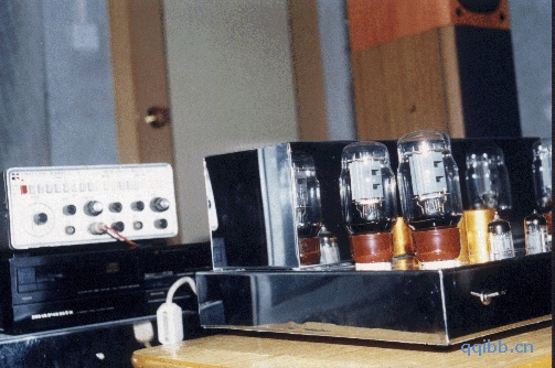 正在测试的后级,后面的是信号发生器,下面的CD唱机就是马兰士-650,拍照此图片时正在测量噪声电压,此机的噪声电压为0.4mv/8欧姆(在输入空载时)。