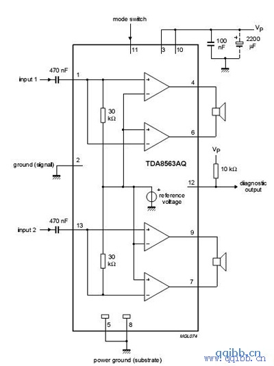 TDA8563AQ是一个双声道立体声输出的功率放大器。