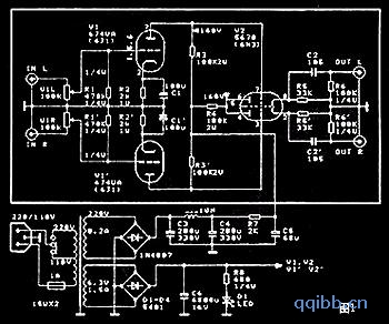 首先确定电路,图1是日本人须藤氏的佳作,电路为直耦式,采用阴极输出器。本机FS-660型则全部照搬,只是用管不同。电路中,前级每声道使用6J1一枚,输出级每声道选用管身高度为43mm的矮胖型小九脚美国JAN靓声管 5670、2C51(代换管国产6N3)一枚做双三极管并联低阻抗阴极输出,比原电路管型的输出阻抗特性好出一大截。