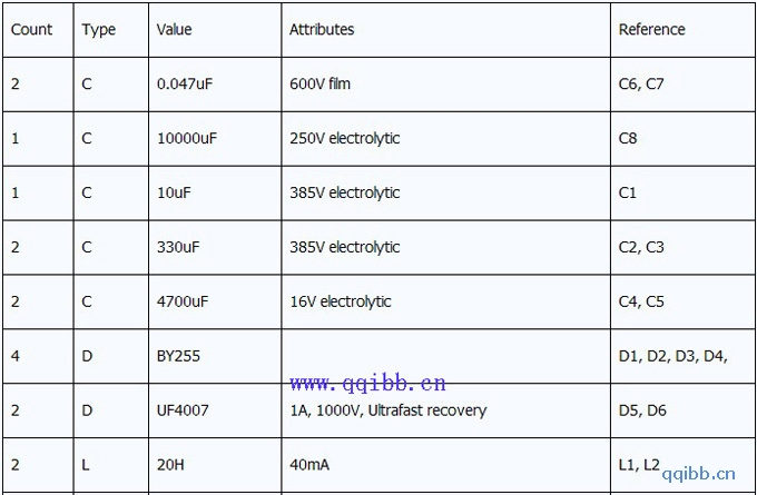 电源电路元件表: