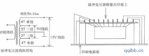一般ATX电源的脉冲变压器的绕组结构见图5,为了满足5V/22A电流的需要,一般5V绕组采用三股0.83mm的漆包线并联使用,12V/8A串联于5V绕组上用双线并联使。而我们用于胆机供电时,用不了那么大的电流,所以在重新绕制时需重选漆包线的线径,具体的绕制参数见图4中的标注。将改绕好的脉冲变压器顶部向下,用粘合剂粘在印板上固定,然后将初级线圈、5V、12V线圈分别连接到印板上原位置,高压用的4只快恢复二极管采用搭焊方式,焊在脉冲变压器的空置引脚上选择所需电压端的抽头焊上。然后通电检查5V端子看能否输出6.3V的直流电压,如能输出6.3V直流电压说明脉冲变压器改制成功,如电压偏差在15%以内可重新调整取样电阻的阻值来满足,如偏差太大则应检查脉冲变压器绕制数据,不行则需重新绕制。检查散热风扇的电压情况,根据情况增减串联在风扇电源电路中二极管的数量以保证电压稳定在12V,使风扇能安全稳定地工作。这样改制的ATX电源就可以用于胆机的电源供应了,当然用开关电源为胆机供电这个问题在圈内一直有争议。这就看设计者自己怎么选择了。根据我个人使用这两种电源的情况来看,开关电源对音质并没有什么影响,而且灯丝供应还非常稳定,不会受到市电变化的影响,重量也比铁芯式变压器轻很多。