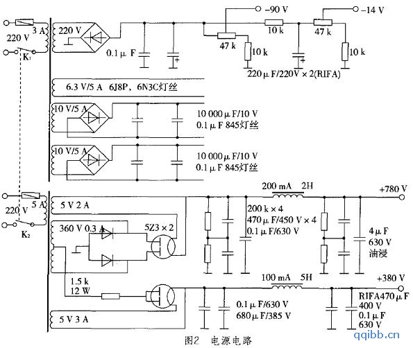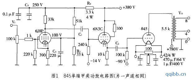 为充分发挥845电子管高保真音质的潜能,采用无负反馈单端甲类输出电路。