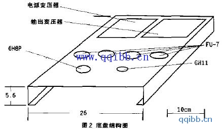 底盘的制作可参照图2。材料的选取对声音有一定影响, 曾实验过铁板、铝板、不锈钢板等,不同的材质对音色产生不同的影响。从机、电、磁各方面来说铝板是最理想的,但是从音效上来说并不是很理想,它的声音有点发散,声像也有点模糊。铁板最不足取,理由很简单,用于机架的内磁电特性很不理想,各种变压器的泄露磁场在铁板内会产生复杂的电磁干扰,并对靠近铁板的元件产生磁耦合而造成音质污染。在笔者的实验中,使用相同的元件和电路,用铁板做机架时,可以明显的感觉出音质变差。不锈钢板是个有争议的材料,有人指责它声音呆板发涩,但是笔者的对比实验还是觉得要好过铝板和铁板。主要是表现在中低频段的凝重感上,是其他两种材料所无法相比的,况且还比较美观。缺点是由于不锈钢的硬度较高,业余情况下的加工制作比较困难些。[!--empirenews.page--]