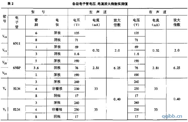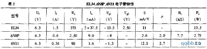 调整工作点,要根据《电子管》手册上提供的数据,作为电子管机电路调试的依据。本机所选用的EL34、6N8P、6N11电子管特性如表1所示。