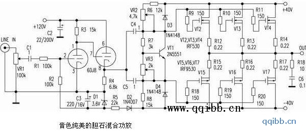 TA-292C胆石混合后级功放电路图