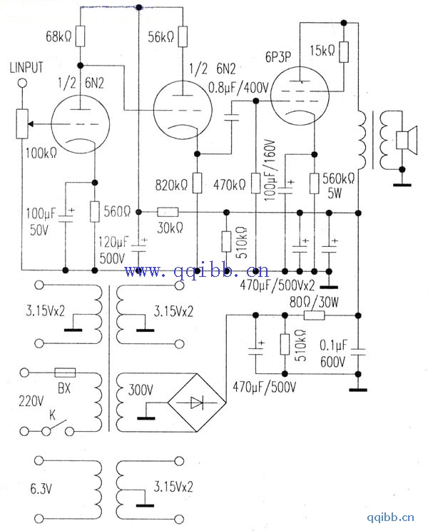 笔者制作了一款电子管后级功率放大器,所用胆管为价廉易购的6N2+6P3P,试听效果不错。将制作过程和步骤写出来与发烧友共享(电路见图)。