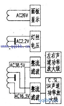 不同的功放其电源电路原理基本一样,只是输出电压值略有不同。检修不同机型的电源电路都可以图1为参考进行相应的测试。